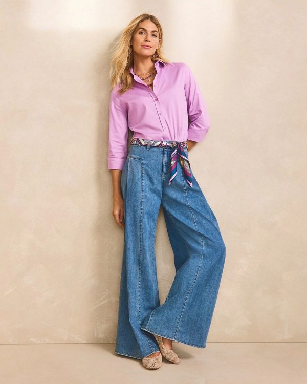 Diversify your denim styles with Chico’s new Drape Wide-Leg Jeans. Featuring a stylish wash and eye-catching details.