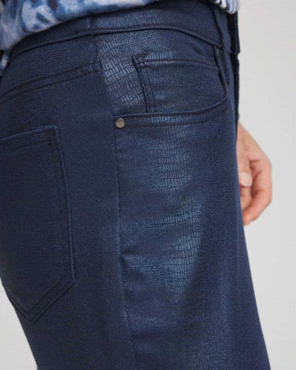 Go bold this season with our new stunning So Slimming® Girlfriend Coated Animal Print Jeans. Featuring our signature So Slimming® inner panel for ultimate tummy slenderizing and custom-made gold foil alligator print coating. Perfect pair for tees, tops, blazers, and sweaters.