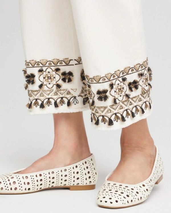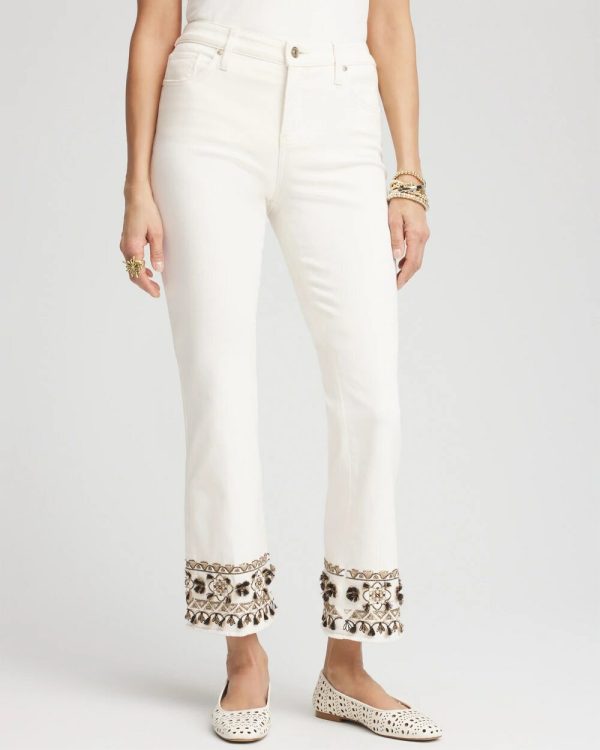 Chico’s Jeans & Denim | Girlfriend Embroidered Kick Flare Jeans Ecru Women
