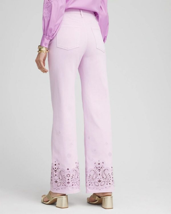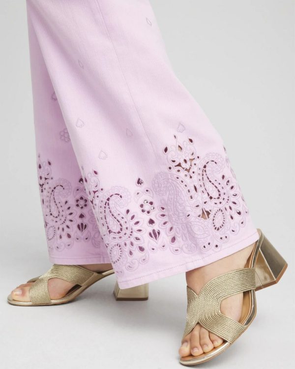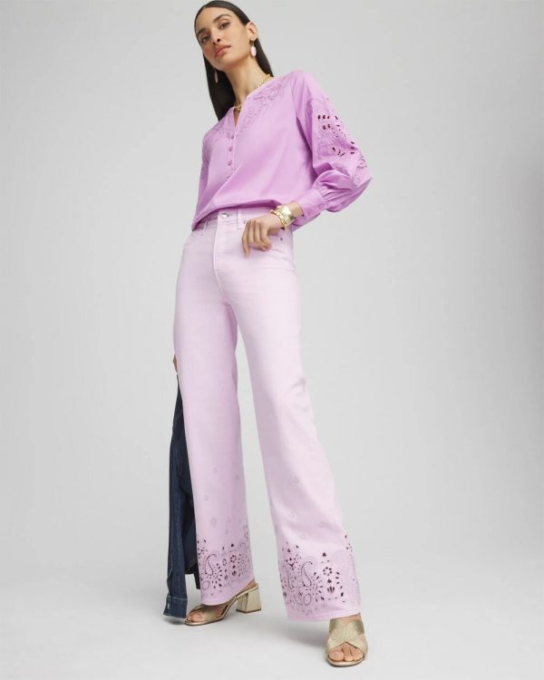 Brighten your denim collection with Chico’s new Lavender Eyelet High-Rise Jeans. Featuring a stunning hue, eyelet detailing, and flawless fit.