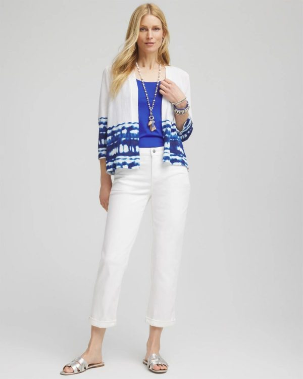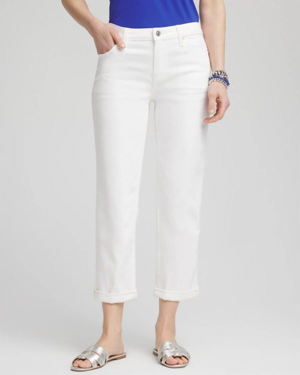 These boyfriend crop summer jeans, feature a more relaxed fit through the hips and thighs with a fly-front, convertible rolled cuff, and 5-pocket design. Powered by Stain-Repel, Bright-White™ technology, they stay white longer and repel water-based spills. Pair with your new seasonal tee and top wardrobe.