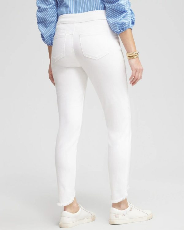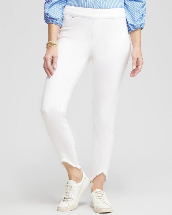 Comfortably sleek, our No Stain Fray Hem Ankle Jeggings give you the look of classic jeans in a stretch fabric that flatters your form with the added flair of a frayed tulip hem. Powered by Stain-Repel, Bright-White™ technology, these jeggings offer a stay-true hue that stays white longer and repels water-based spills. Plus, they stay comfy all day, so they’re great for both busy days out and about or relaxing around the house.