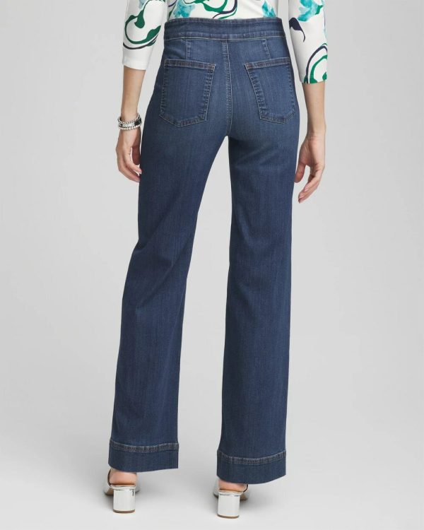 - Classic relaxed-leg jean; five-pocket design, featuring a Chico’s CC logo button.