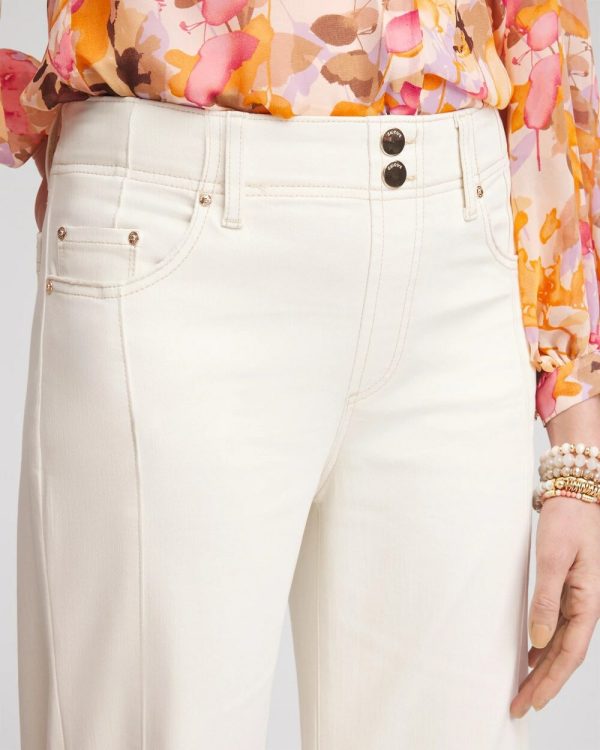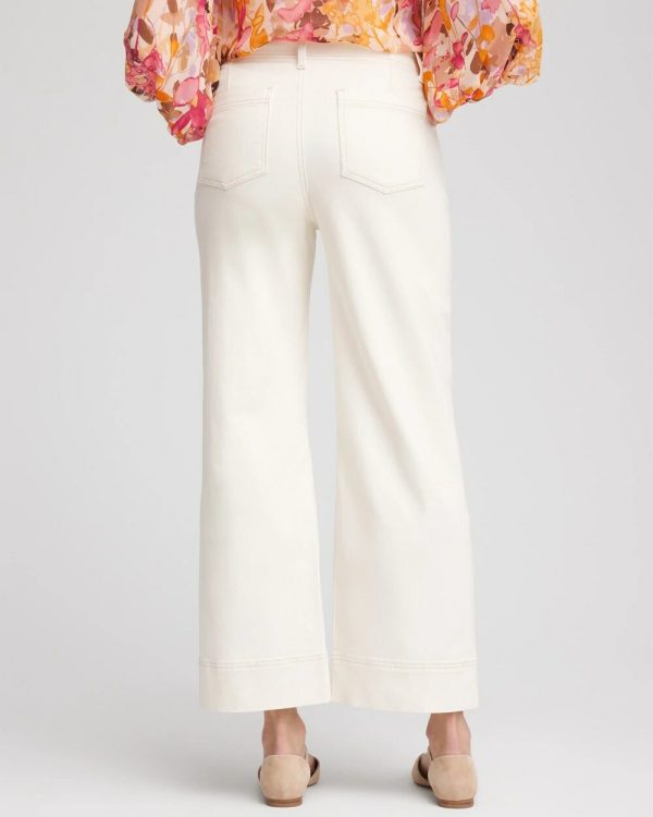 - Cropped, wide-leg jeans with a tailored look, stylish buttons, and belt loops.