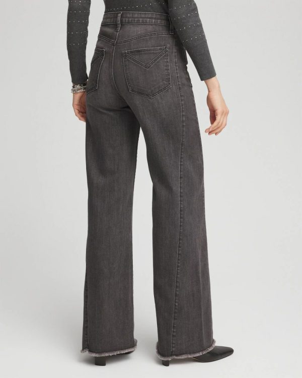 The wide leg jean has fast become a fashion classic, our pair of Wide Leg Frayed Hem Jeans have an elegant black wash, side seam details and frayed hems. These jeans look spectacular when paired with a fitted top or our matching denim jacket. On your feet you can easily choose sneakers, heels or boots.