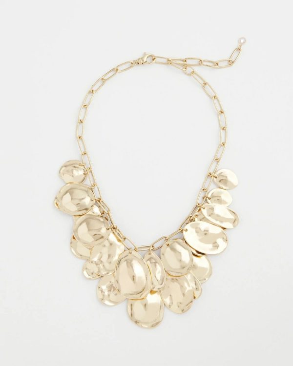 - Glamorous layer of cascading gold-tone, free-flowing circles on a paperclip chain with a lobster-claw closure.