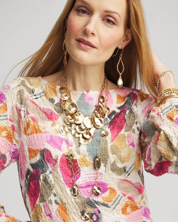 Chico’s Originals: Inspired by our past, designed for today. We’ve created the perfect jewelry set to catch the light of the longer days of early spring and instantly elevate your style with a touch of shine. Introducing the Chico’s Originals Nomadic Charms Necklace, designed to be worn with its matching single strand layer. Inspired by the 70s ‘It girl’ and her affinity for decadent jewelry and accessories, metallic hues, monochromatic, tailored, or flowy looks. This bib necklace showcases a vintage sensibility with a nod to the modern fashion era. Featuring cascading layers of hammered mixed-metal and golden-organic circles. Wear for an instant outfit upgrade. The perfect late winter, early spring adornment to layer with your favorite Chico’s sweater or tailored jacket. The ‘It girl’ always knows how to layer, style, and accessorize — we’ve done it for you with the new Chico’s Originals Collection.