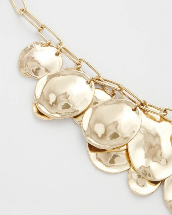 - Glamorous layer of cascading gold-tone, free-flowing circles on a paperclip chain with a lobster-claw closure.