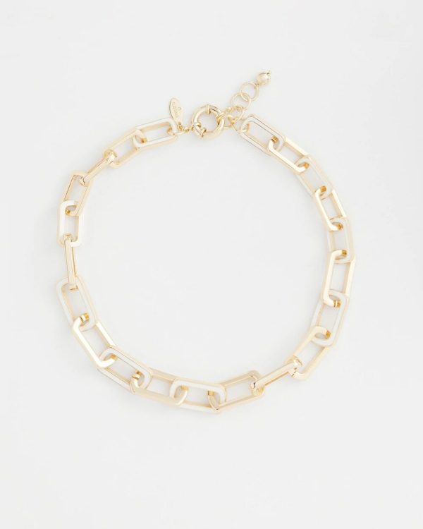 The Enamel Chain Necklace has modern style. This design features white enamel chain links accented with gold tone. Wear it with pieces from our Enamel Collection for a perfect match.
