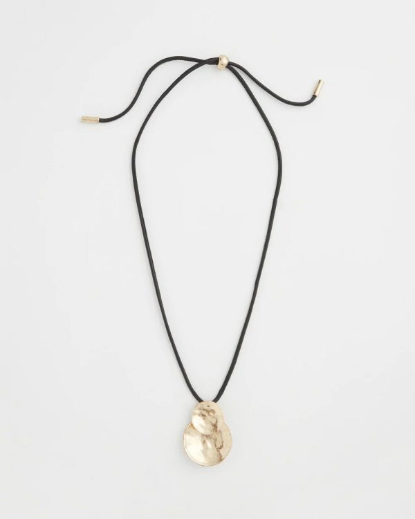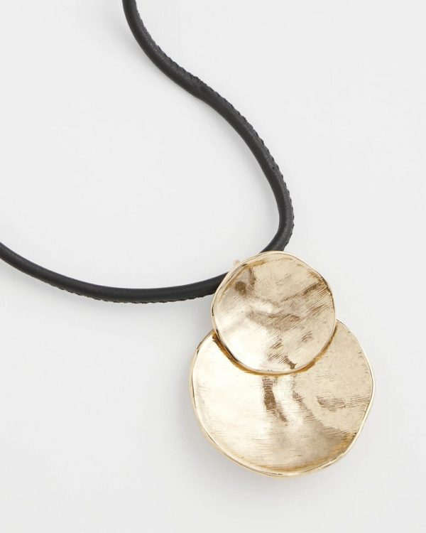 Sleek, stacked circles slide on a single strand of leather cord to create this stunning necklace. Pair this most-loved silhouette — Gold Tone Circles Pendant with other Chico’s jewelry.