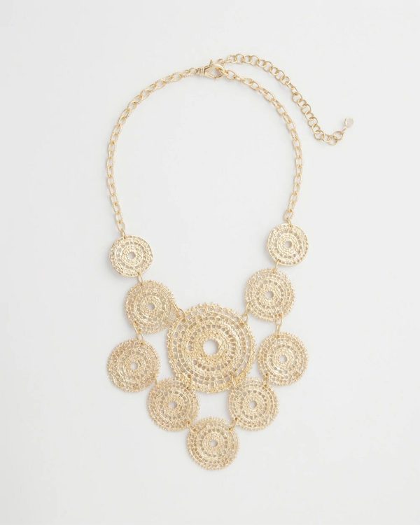 *New Showstopper alert* Add this new must-have Gold-Tone Lace Bib Statement Necklace to your ‘stand-out from the crowd’ collection. Pair it with Chico’s matching, iconic jewelry styles.