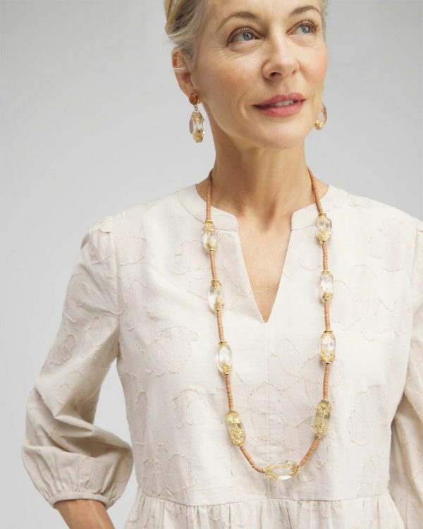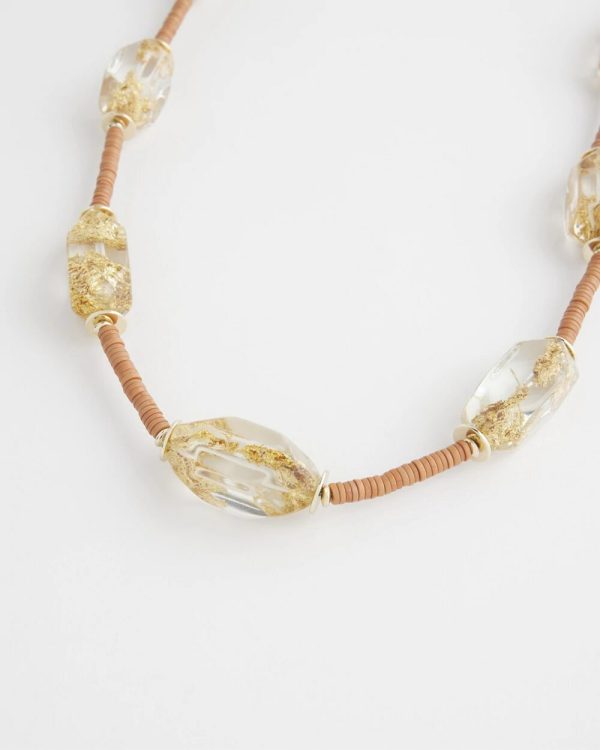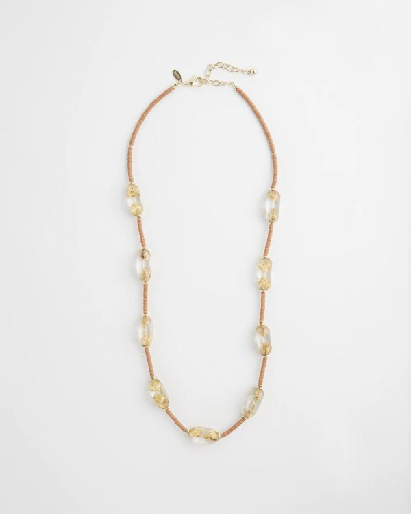 The Lucite Gold Foil Necklace is a standout beauty. This design features resin beads with shimmery gold foil on a single strand. Pair it with pieces from our Gold Foil Collection for an inventive final touch.