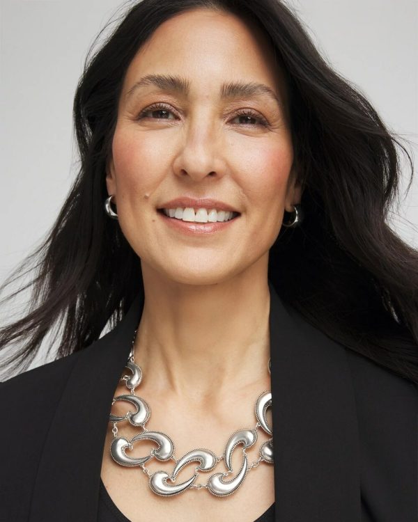 Gorgeous interlocking swirls Modern Waves Collar Necklace. This sophisticated style elevates any outfit, from casual to dressy. Layer with any like tones and pair with pieces from Chico’s Desert Waves Collection.