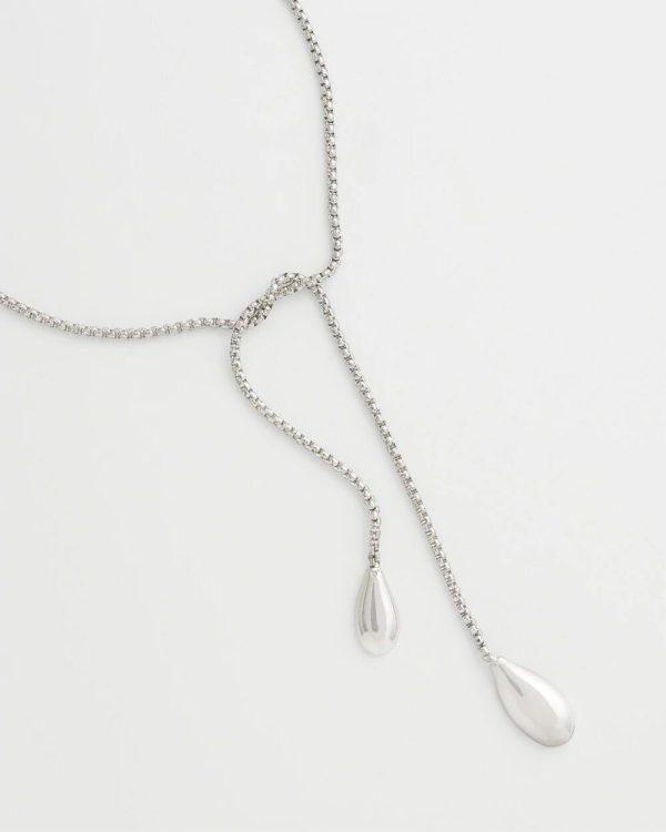 Pair this new Silver Lariat Necklace with its matching three piece set, including pendant and collar layers.