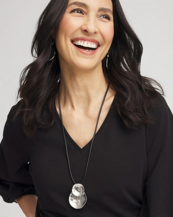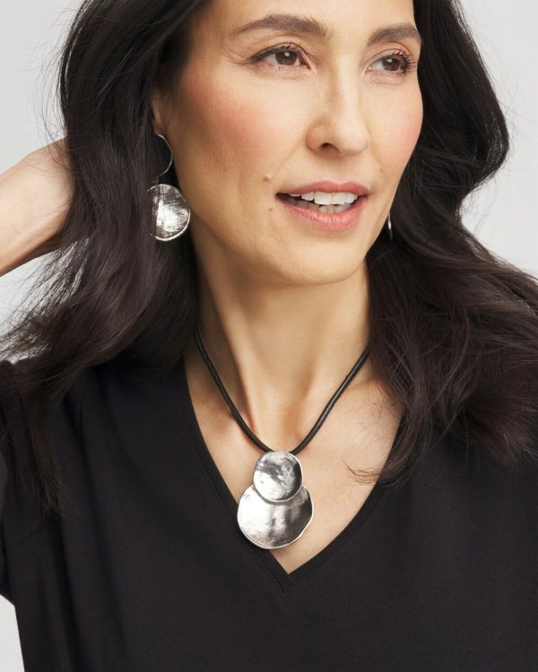 Sleek, stacked circles slide on a single strand of leather cord to create this stunning necklace. Pair this most-loved silhouette — Silver Tone Circles Pendant with other Chico’s jewelry.