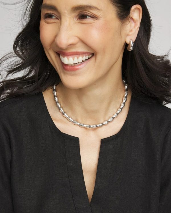 Chico’s Necklaces | Silvertone Bamboo Collar Necklace Silver Women