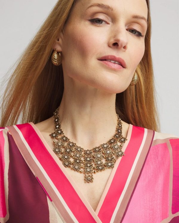 Chico’s Necklaces | Sparkle Lace Bib Necklace Gold Women