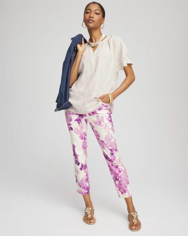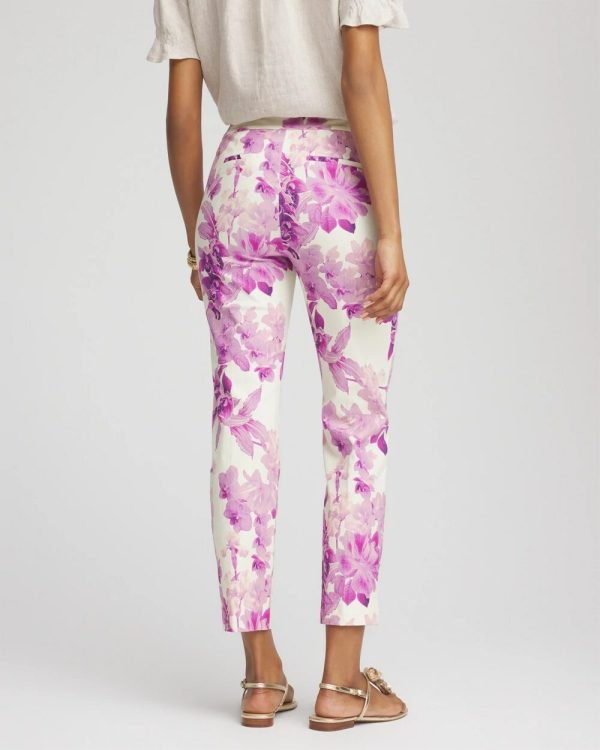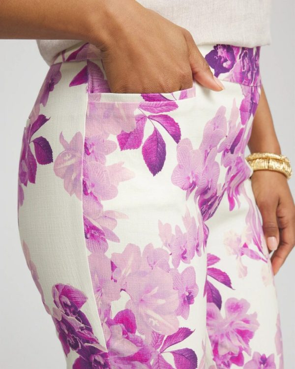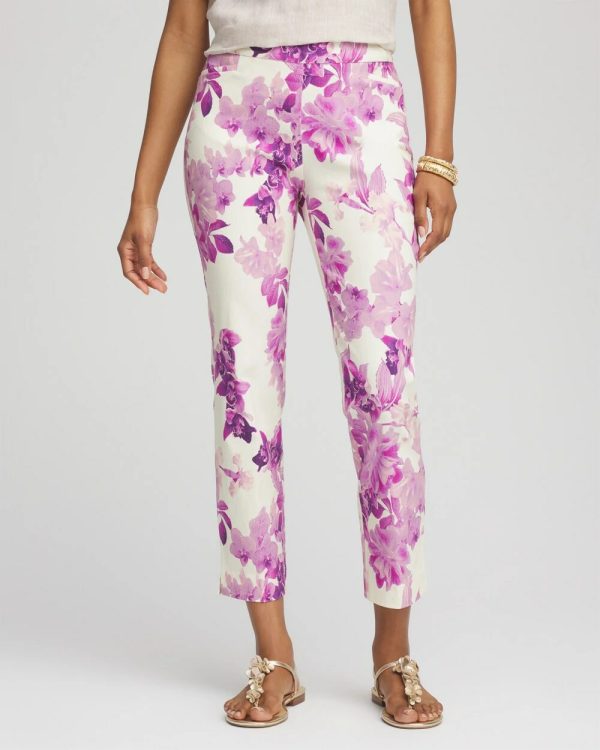 Chico’s Pants | Brigitte™ Floral Pull-On Slim Cropped Pants Plum Shade Women