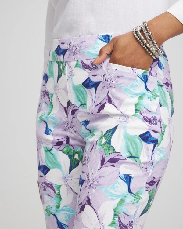 The Brigitte™ Lily Motif Capri Pants showcase a slim leg silhouette, capri length just beyond the knee, and ultra-flattering fit. Featuring Chico’s signature So Slimming® built-in shaping solution, extending 180 degrees around for the ultimate tummy slimming. Featuring a ready-to-wear pull-on elastic waist. Available in petite.