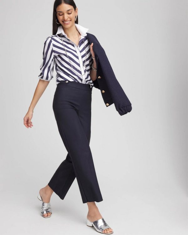 This new iteration of our Brigitte™ Wide-Leg Cropped Pants feature delicate button detailing and an ultra-flattering fit. Featuring Chico’s signature So Slimming® built-in shaping solution, extending 180 degrees around you, sculpting and smoothing your shape for a flattering fit, and angled front pockets to enhance the effect. The rise sits just below the natural waist, offering comfort and style for extra elegant or everyday wear.