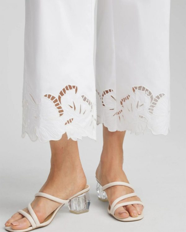 The Cotton Sateen Cut Work Crops are luxe and trendy. These bottoms feature and updated fly front with flex waistband, plus cut work hems on the trendsetting wide legs. These cropped pants pair well with fashion tops for an all-day look that shows off your stunning casual style.