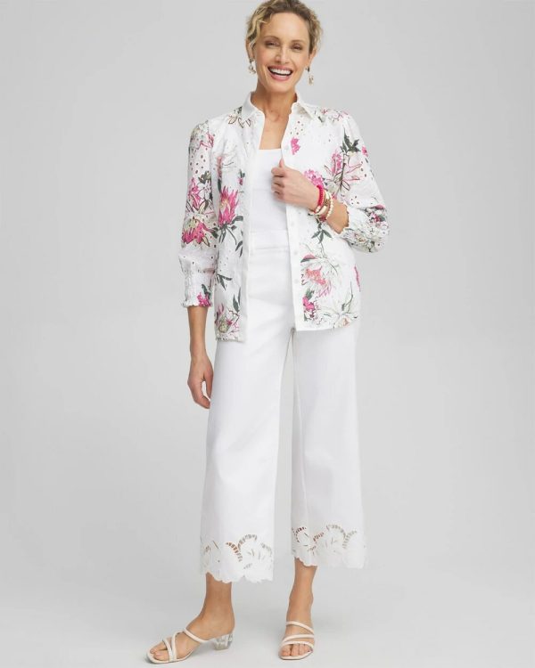 The Cotton Sateen Cut Work Crops are luxe and trendy. These bottoms feature and updated fly front with flex waistband, plus cut work hems on the trendsetting wide legs. These cropped pants pair well with fashion tops for an all-day look that shows off your stunning casual style.
