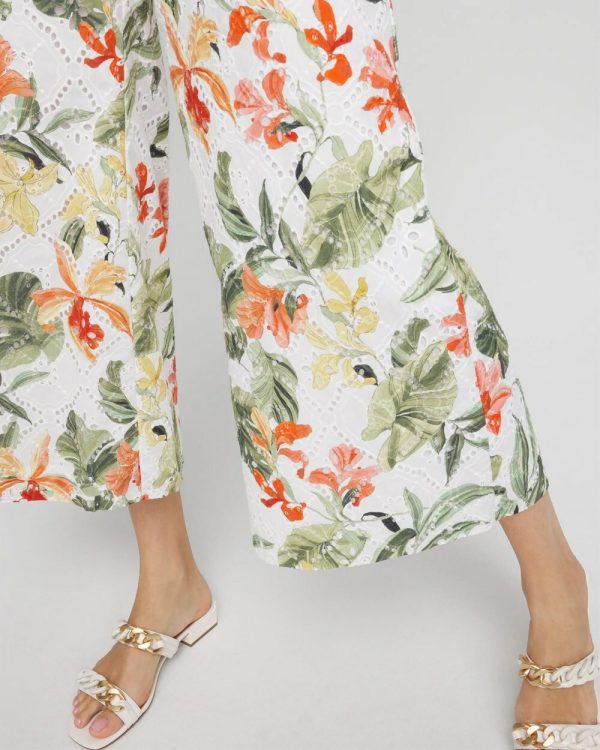 The Floral Eyelet Culotte Pants are perfect for seasonal ensembles. This pull-on style is made from woven fabric, featuring a clean front pull-on waistband with a shirred elastic back, plus a comfy-chic wide leg fit and closed embroidered eyelets. Get noticed for your unique looks when you pair them with our matching shirt.