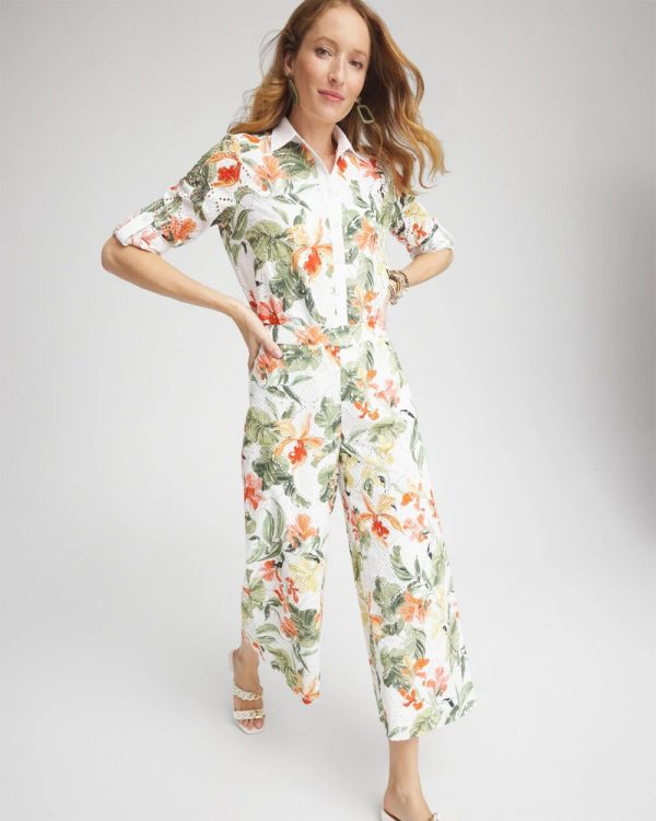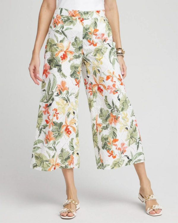Chico’s Pants | Floral Eyelet Culotte Pants Alabaster Women
