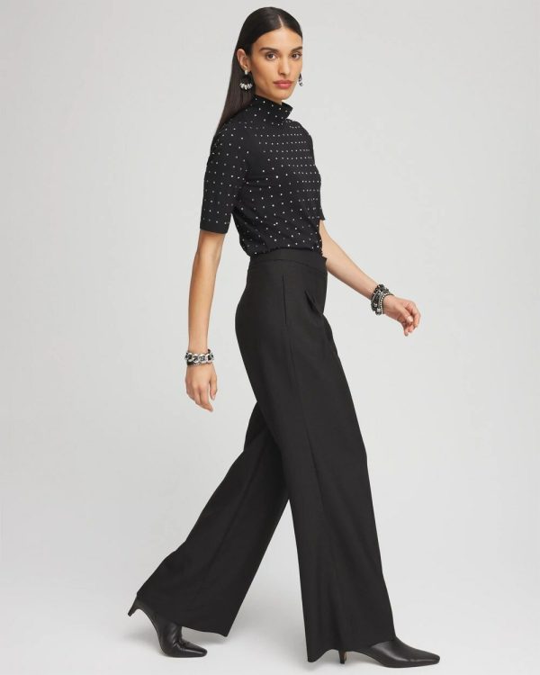 An elegant drape with a shimmering sheen — our new Pleated Wide Leg Pant. Features a high waistband,fly-front, faux back pockets, and front pleats for a classy look paired with your favorite blouse or sweater.