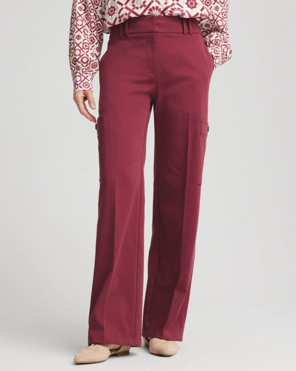 - High-rise fit straight leg with a narrow, even fit from the hip all the way down to the ankle. Fly-front with belt loops, full functioning cargo pockets, and belt loops for styling. Enclosed stretch elastic back: “secret stretch.”