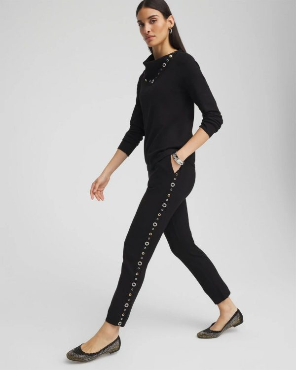 You will love the new stunning Zenergy® Luxe Cashmere Blend Embellished Ankle Pants. Where casualwear meets luxury: featuring super-soft material with a hint of cashmere and decorative grommet detailing along the sides. Wear with our matching Zenergy® Luxe Cashmere Blend Embellished Top.