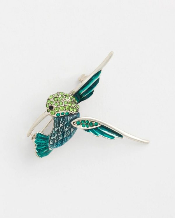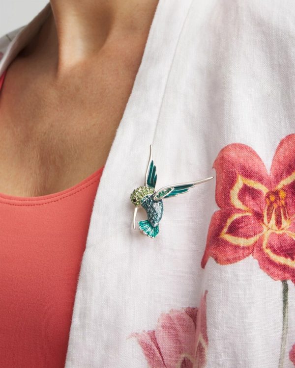 Wear a raw crystal iteration of the season with you wherever you go with this new fabulous, Genuine Amazonite Stone Hummingbird Brooch. Pair with pieces from Chico’s Flower Bomb Collection. Accessorize your tops, purses, or jackets.