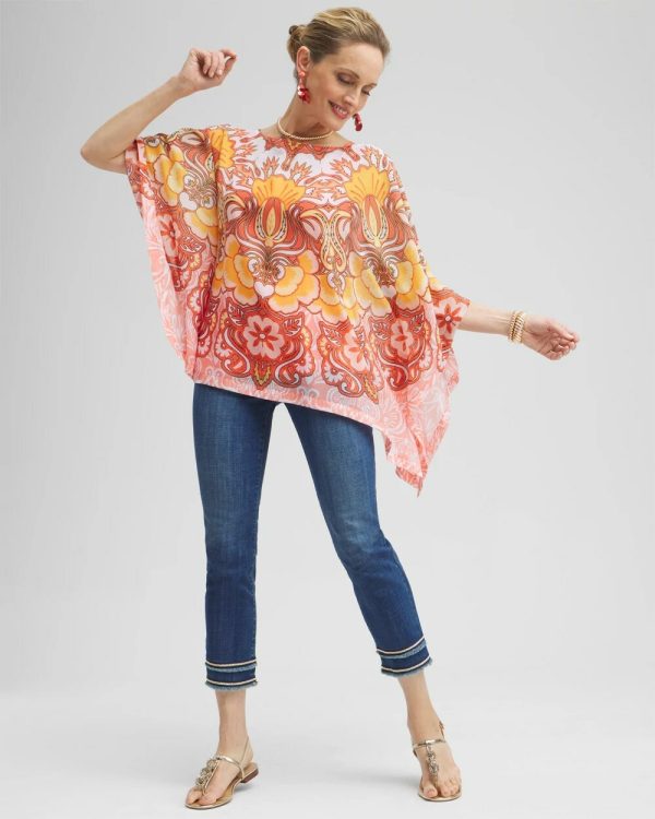 For day or evening, our new Chiffon Paisley Poncho has vibrant seasonal style. This design features a warm paisley print on lightweight woven fabric, best worn with a Microfiber Tank underneath. Dress it down with jeggings on casual days, or dress it up with pants for more upscale affairs.