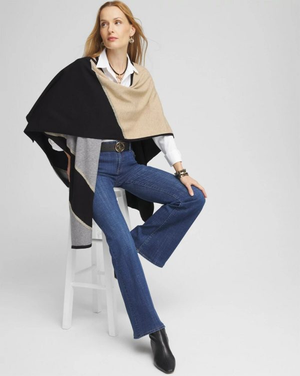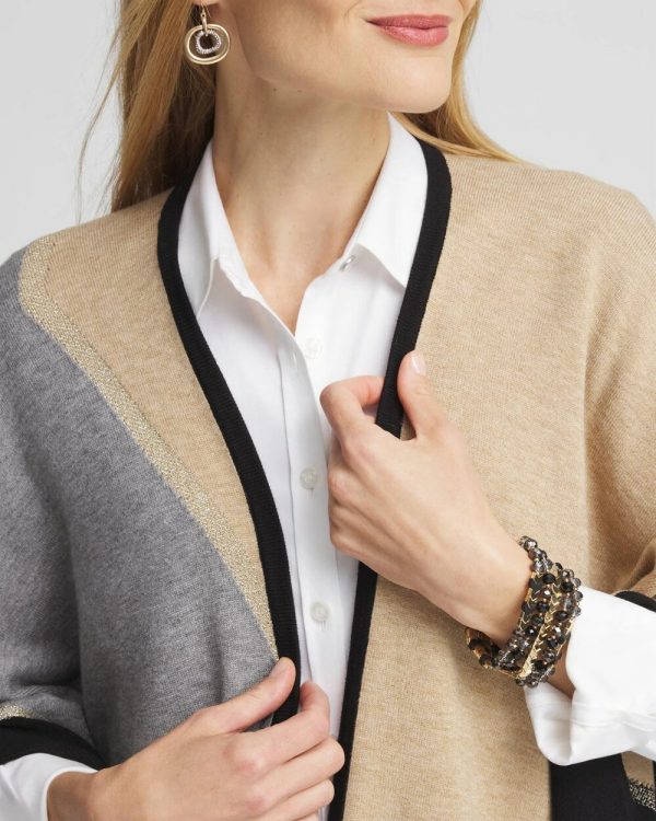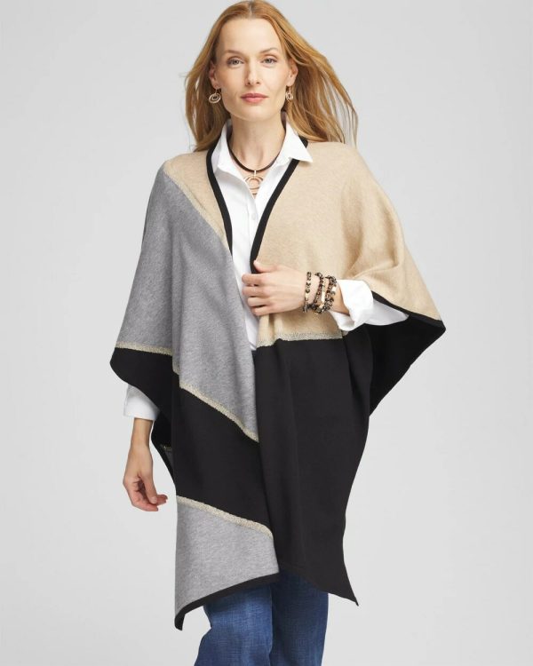 Tis the season to be glamorous —our new Colorblock Lurex Ruana. The season’s most sophisticated hues meet sleek silver metallic detailing for add a touch of style. Wear for warmth as the temperatures drop and to elevate your look.