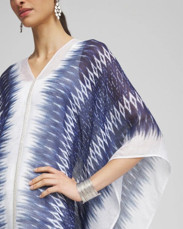 Perfect for your summer getaway, this kaftan features a luxuriously embellished placket, showcasing shimmering, light-catching silvertone beading on the front and back, along with a stunning graphic print. Pair with a head to toe alabaster outfit.