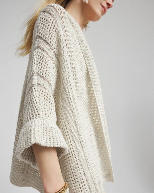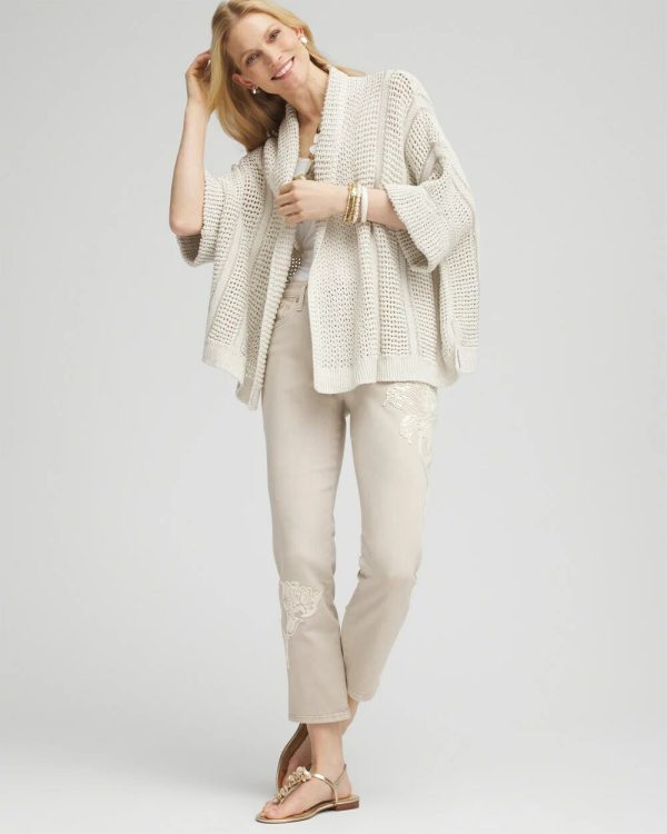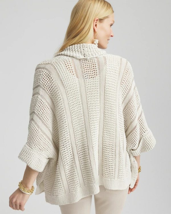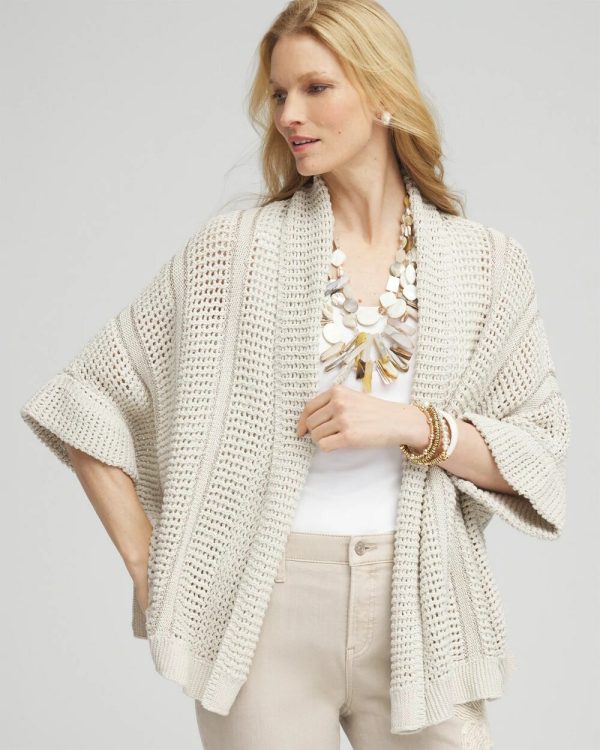 Wrap yourself in cozy luxury with Chico’s new Novelty Knit Cuffed Sequin Ruana. Romantic and beautiful with a subtle shine design. Don’t leave home without it. Lightweight topper with elbow-length cuffed sleeves, ideal for chilly nights or for adding a touch of eye-catching style.