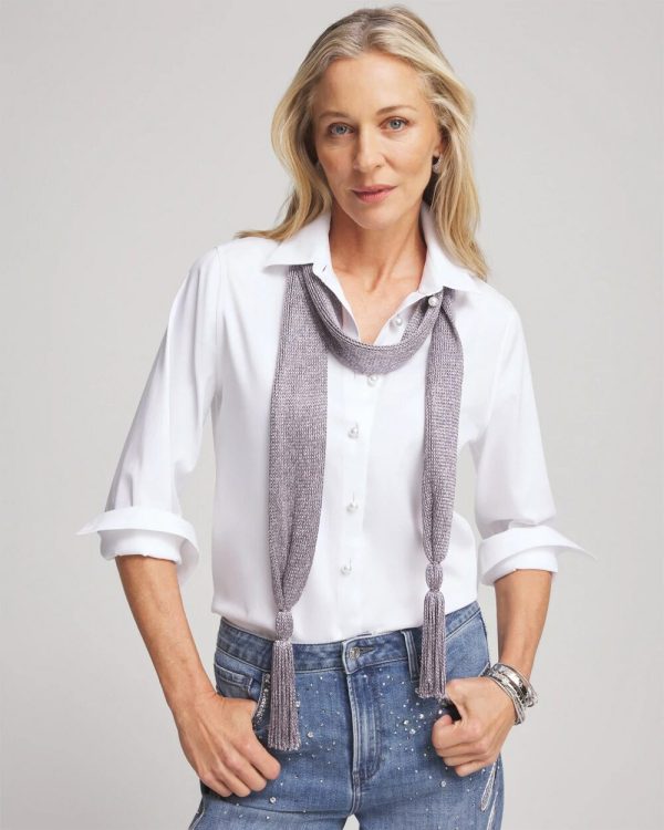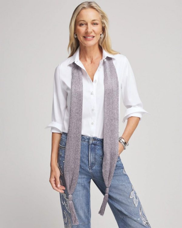 A classic staple for the season — our new Metallic Knit Skinny Scarf. With tassel detailing at both ends, a subtle all-over sheen this novelty knit is a must-have for the season of style, chilly weather, and festivities.