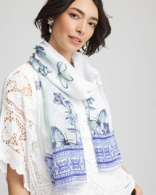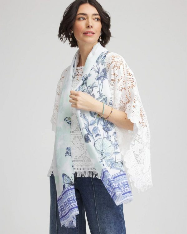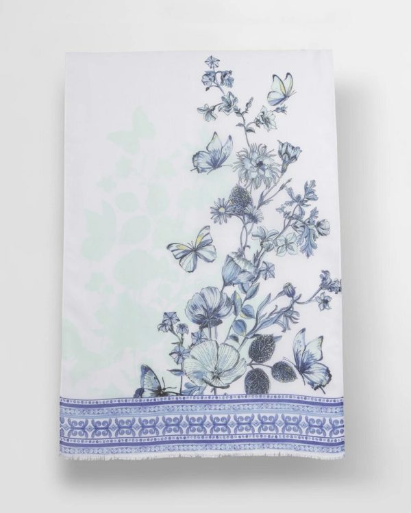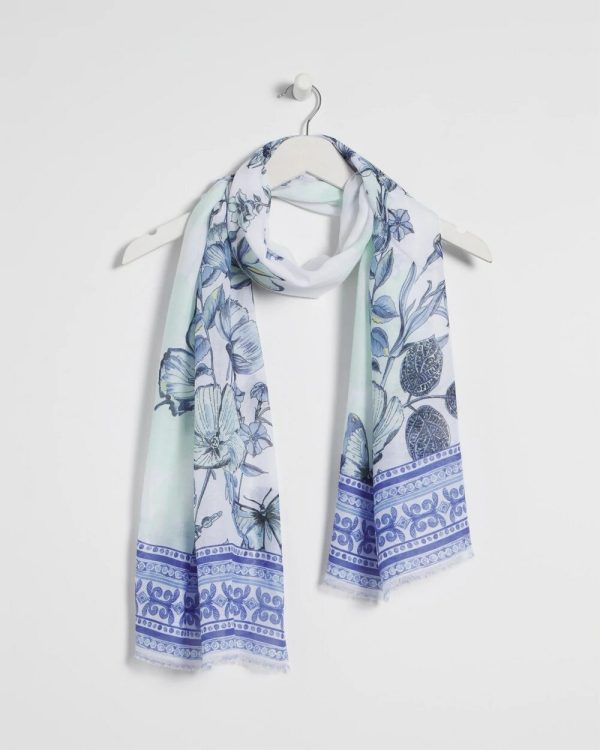 The new Recycled Woven Floral Oblong Scarf has a beautiful blue style with a stylish border trim. This design features a feminine floral pattern with an eyelash trim accent. Wear to add a hint of fashion to your casual looks.