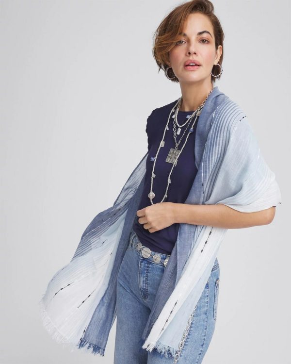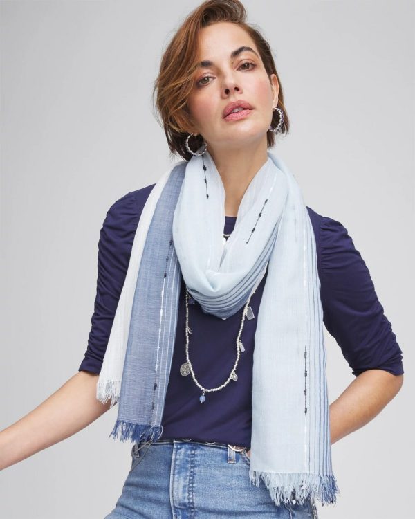 Elevate your style with Chico’s new Slub Ombre Oblong Scarf. Showcasing a touch of shine and gentle eyelash finish.