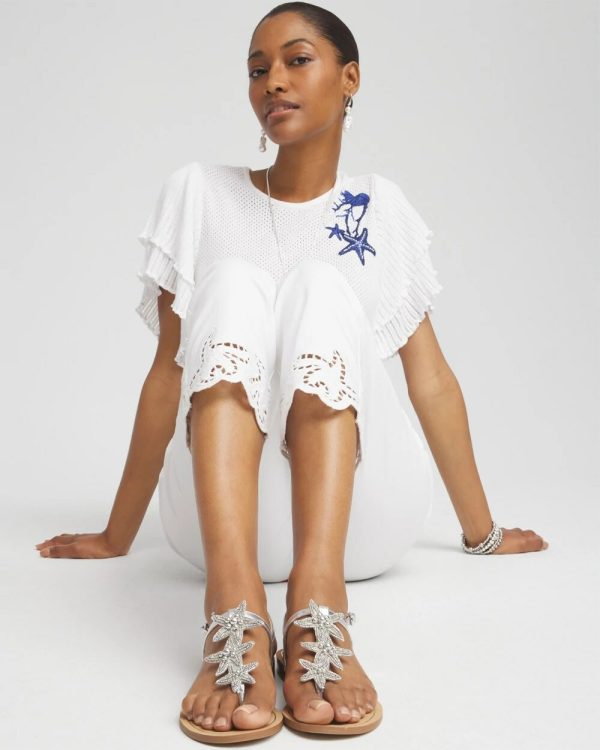 Inspired by the season’s ocean wonders, deep dive theme, the new Beach Starfish T-Strap Sandals are made with high quality and nostalgic style, while keeping comfort in mind. Handcrafted by master artisans with a silvery metallic nappa pu thong featuring a triple beaded starfish design. They’re perfect for adding character and comfort to crops, dresses, and skirts.