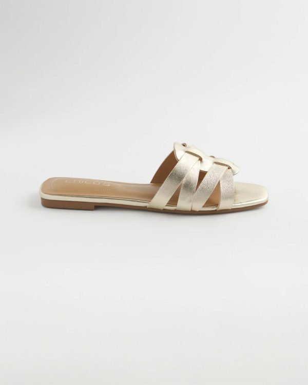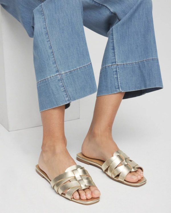 Inspired by the season’s beautiful nature, the new Leather Cassidy Cross-Strap Slide Shoes, handcrafted with high quality and nostalgic style, keep comfort in mind. Simple slip on and go shoe with a full vamp to stay secure and raw edge straps. Made with memory foam sock padding for all day or night comfort. Expert artisans embellish this pair with a metallic leather upper with fisherman detailing.