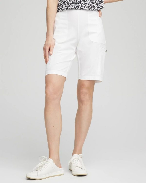Chico’s new Zenergy® UPF Neema Cargo Shorts are the perfect spring into summer pair. Showcasing lightweight, rapid-dry, moisture-wicking, four-way-stretch Neema fabric. Rated UPF 50+ to block both UVA and UVB rays. Back ribbed waistband, concealed front zip pockets, and side snap cargo pockets.
