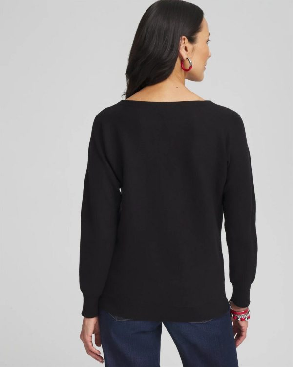 - Classic fit, long sleeve, bateau neck dolman sleeve pullover.