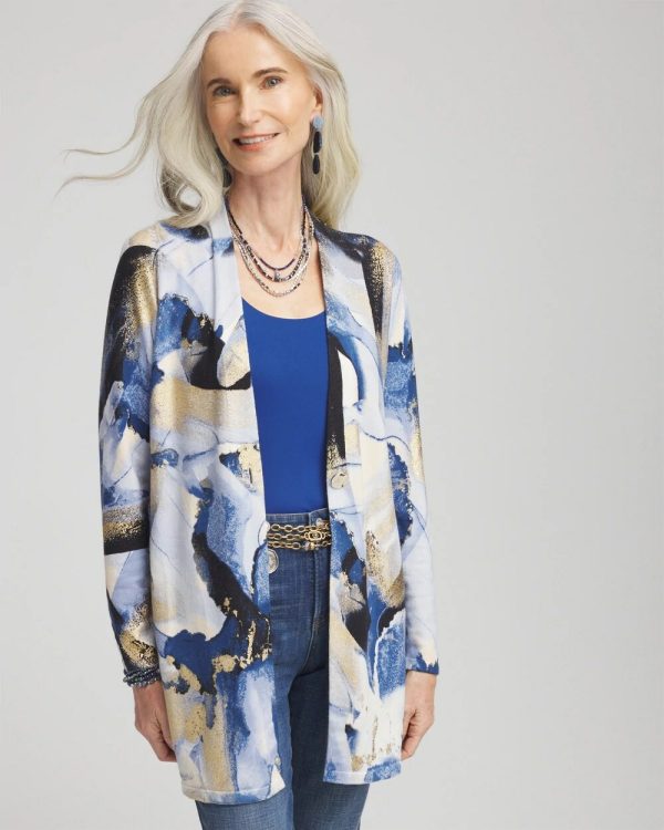 Where abstract design and refined fashion come together beautifully — introducing our new Foil Ocean Print Cardigan. With a print that emulates paint brush strokes and the intricate nature of the ocean, elevated with glamorous gold foiling. Paired with our Brigitte pants or jeans, it’s sure to become one of your favorite top layers.