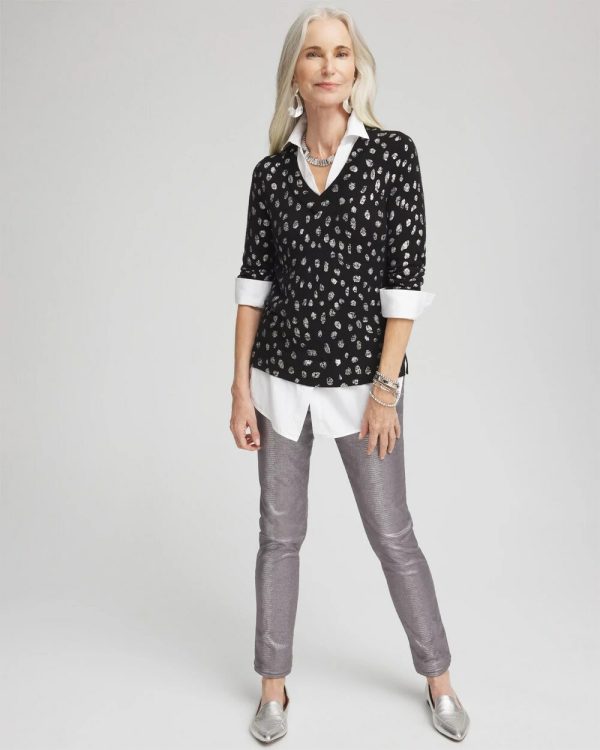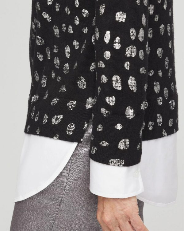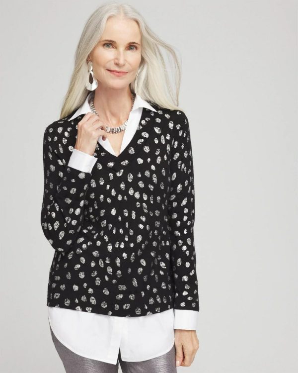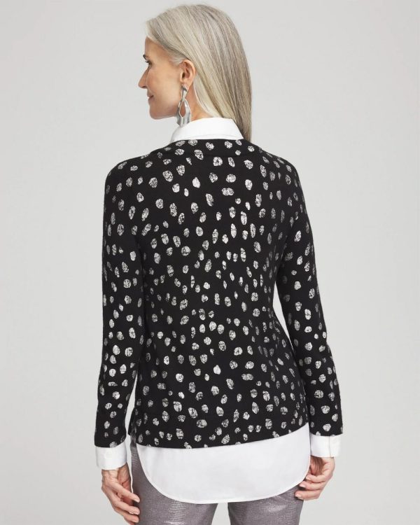Chico’s Sweaters | Foil Spotted Built-In Shirt Knit Sweater Black Women