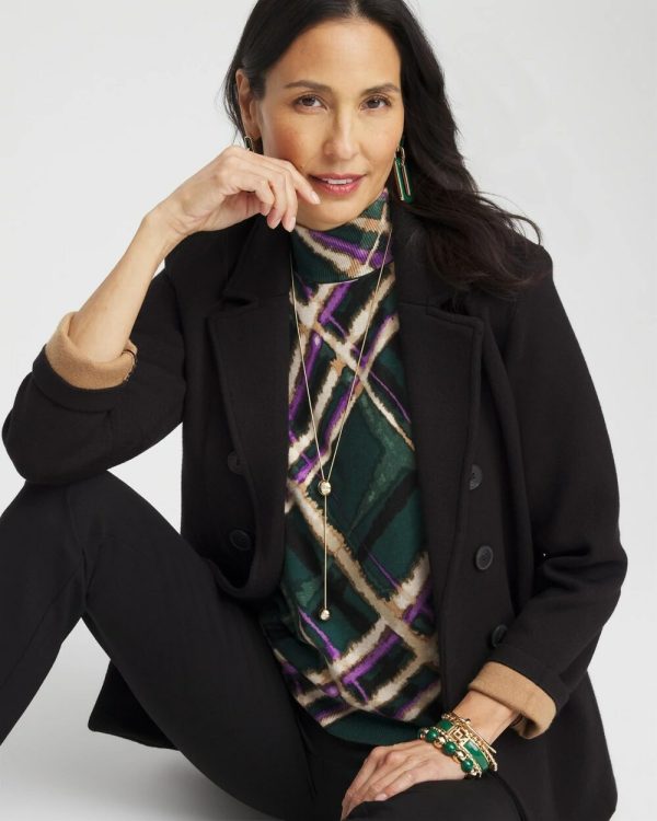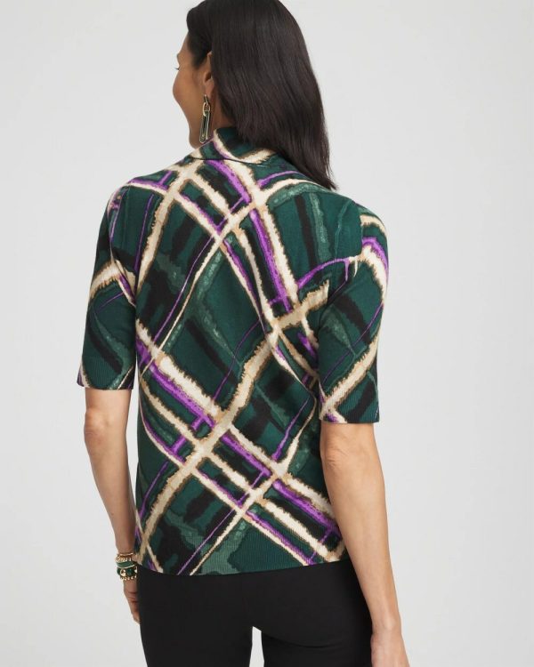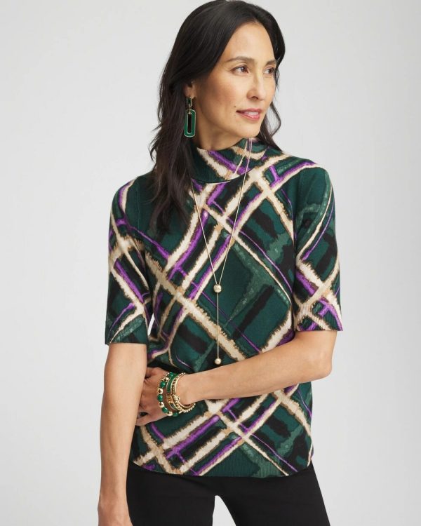 Look stylish and feel cozy in our Plaid Elbow Sleeve Pullover. The rib detail on the sleeve cuffs and hem of this super soft mock neck pullover gives it an elevated casual look. Paired with our Brigitte pants or jeans, this sweater tee is sure to be one of your seasonal favorites.