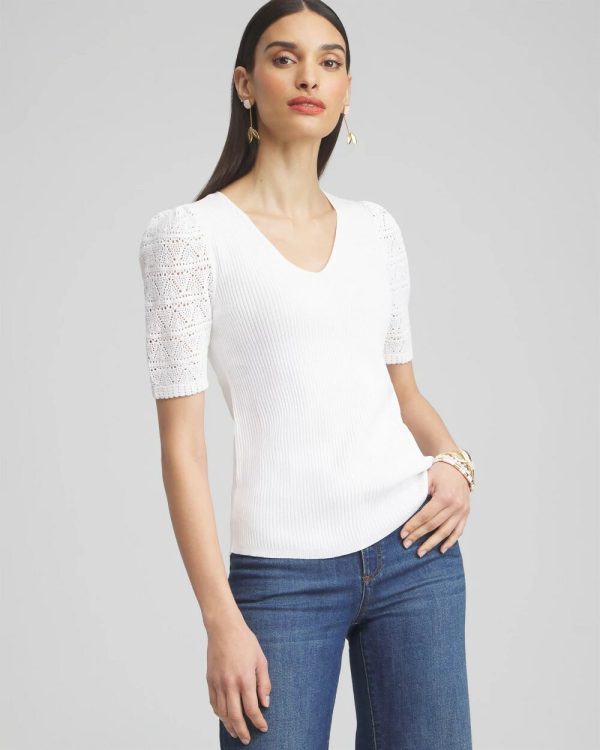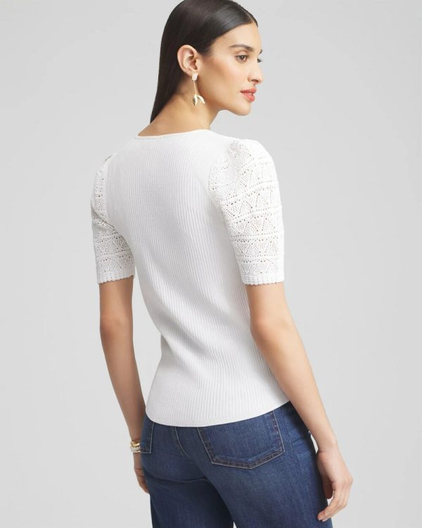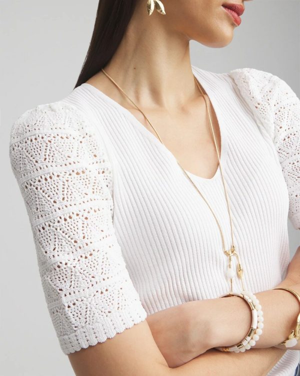 Add something lovely to your seasonal attire with our Pointelle Sleeve Pullover Sweater. This lightweight knit design features intricate pointelle work on the easy sleeves, plus a comfy rib knit body. On breezy days, you’ll love it paired with our Brigitte pants.