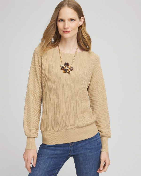 Dress up your jeans and black pants with our Textured Zebra Print Dolman Sleeve Sweater. A textured zebra pattern made with lurex runs through this chic pullover, adding subtle sparkle to your look.