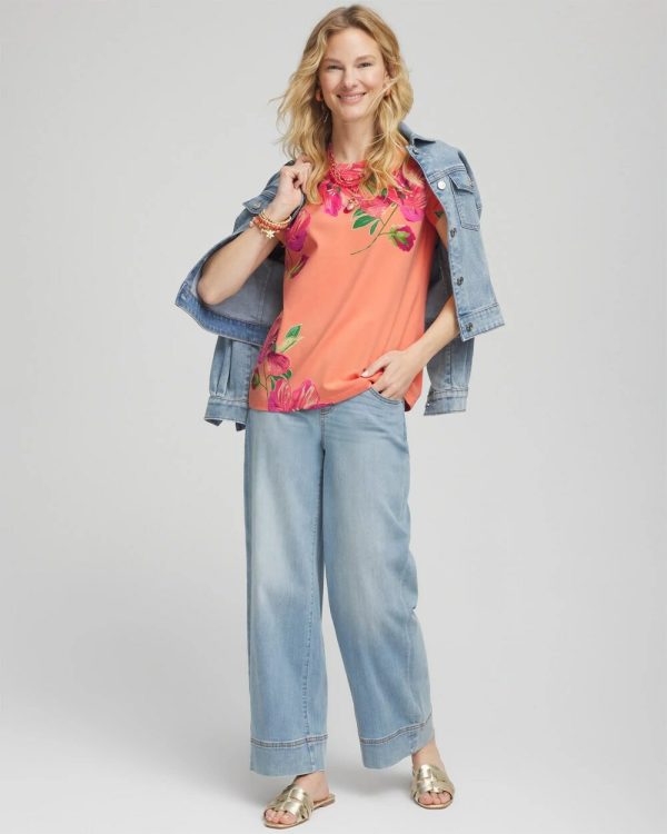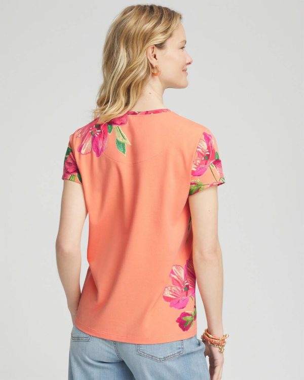 Chico’s Tees | Floral Cap-Sleeve Tee Sunset Peach Women