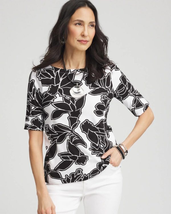 Chico’s Tees | Floral Pima Bateau-Neck Tee Alabaster Women